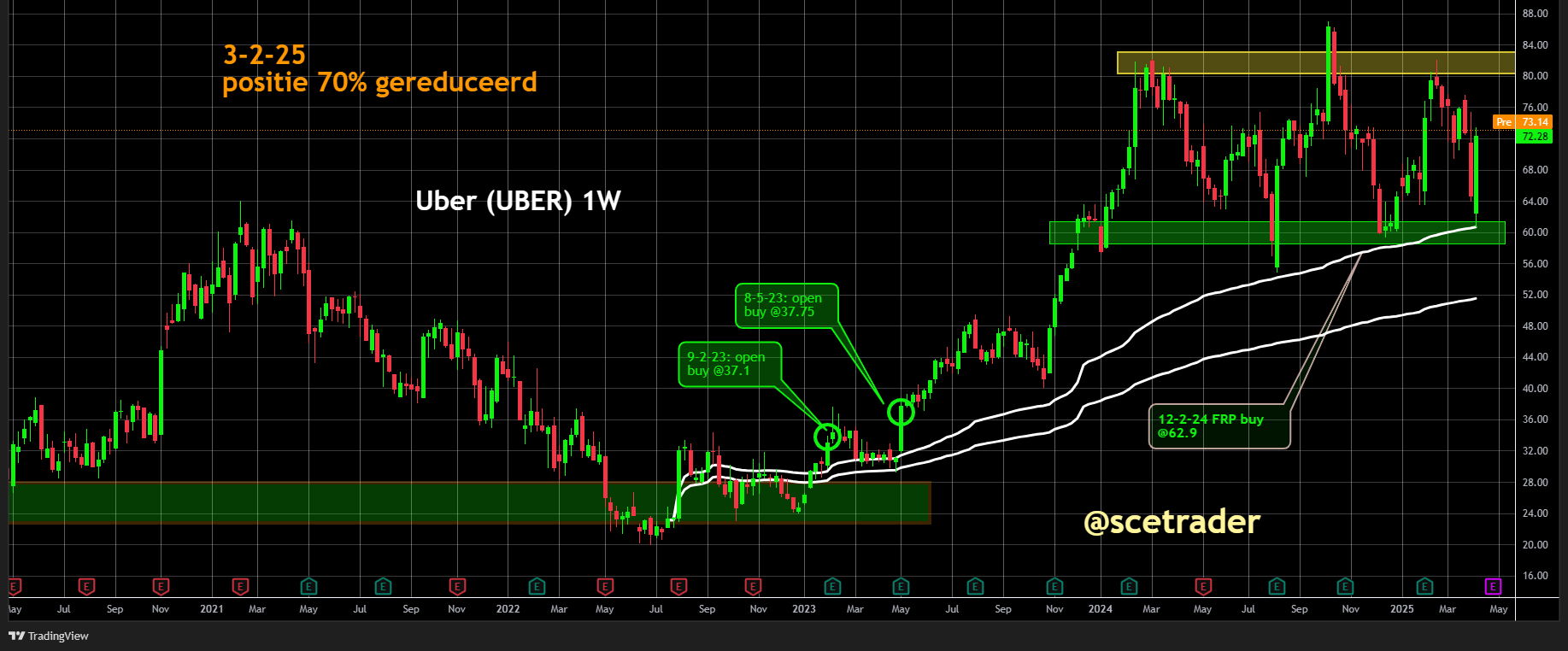 Uber blijft opvallend sterk liggen, ook na het moment waarop op 3 februari 70 procent van de positie werd afgebouwd.