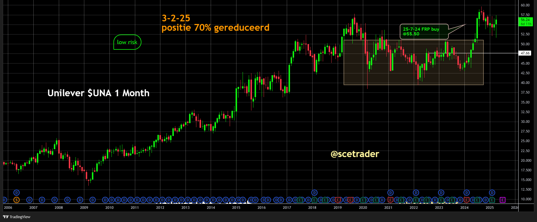 Onze visie is dat Unilever strategisch goed gepositioneerd is om de komende jaren verder te groeien. Door te blijven innoveren, kostenbesparingen op te voeren en de winstgevendheid van de merken te verhogen, bouwt het bedrijf aan een sterke fundament voor de lange termijn. Wij blijven op een stijging zitten.