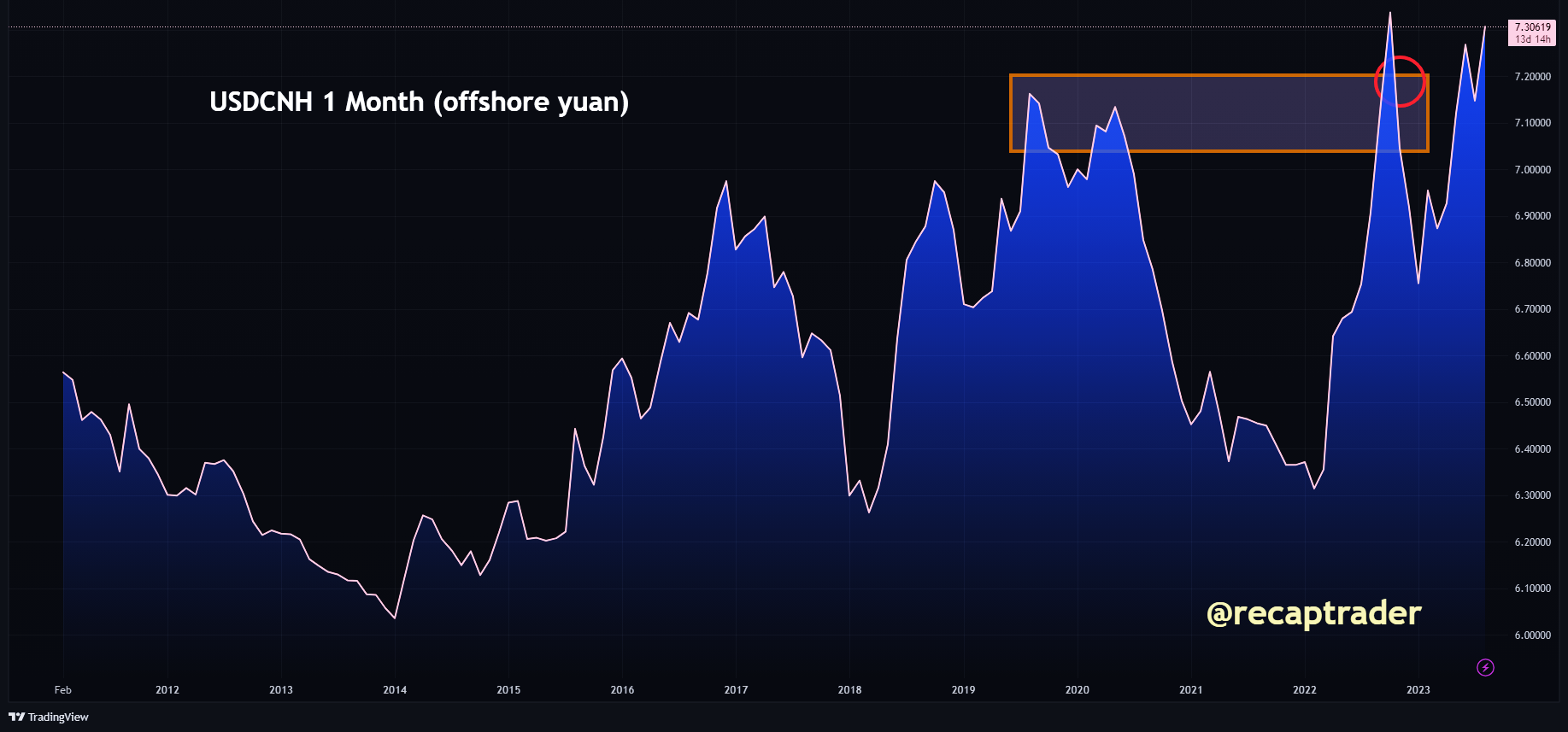 In ieder geval geeft de beweging van de dollar tegen de yuan aan dat beleggers dekking zoeken voor eventuele een nog grotere malaise in de Chinese economie. Dit kan ook leiden tot meer risk-off op westerse assets en beurzen.