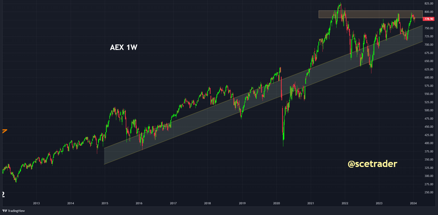 Terwijl de Amerikanen blijven feesten, bevindt de $AEX zich nog steeds binnen een ruime bandbreedte die al lang zichtbaar is.