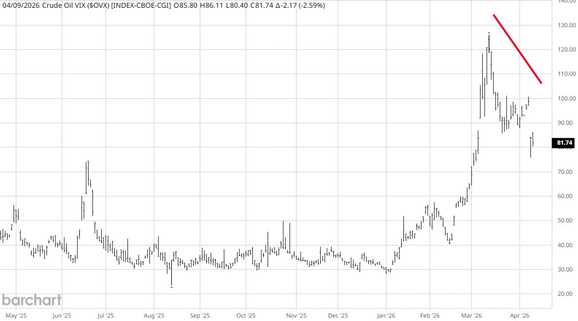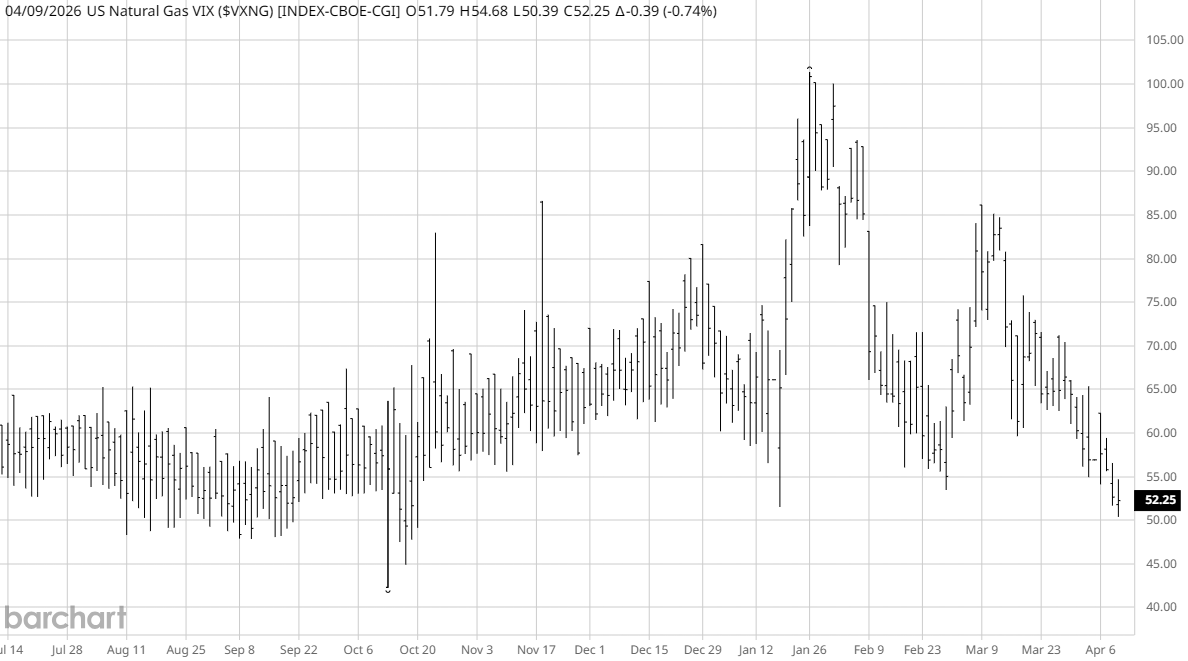 De VVIX meet hoe beweeglijk die VIX zelf is en laat zien hoeveel verborgen stress er nog in het systeem zit. De OVX en VXNG doen hetzelfde voor olie en gas. Als deze indices dalen, verwacht de markt minder extreme bewegingen.