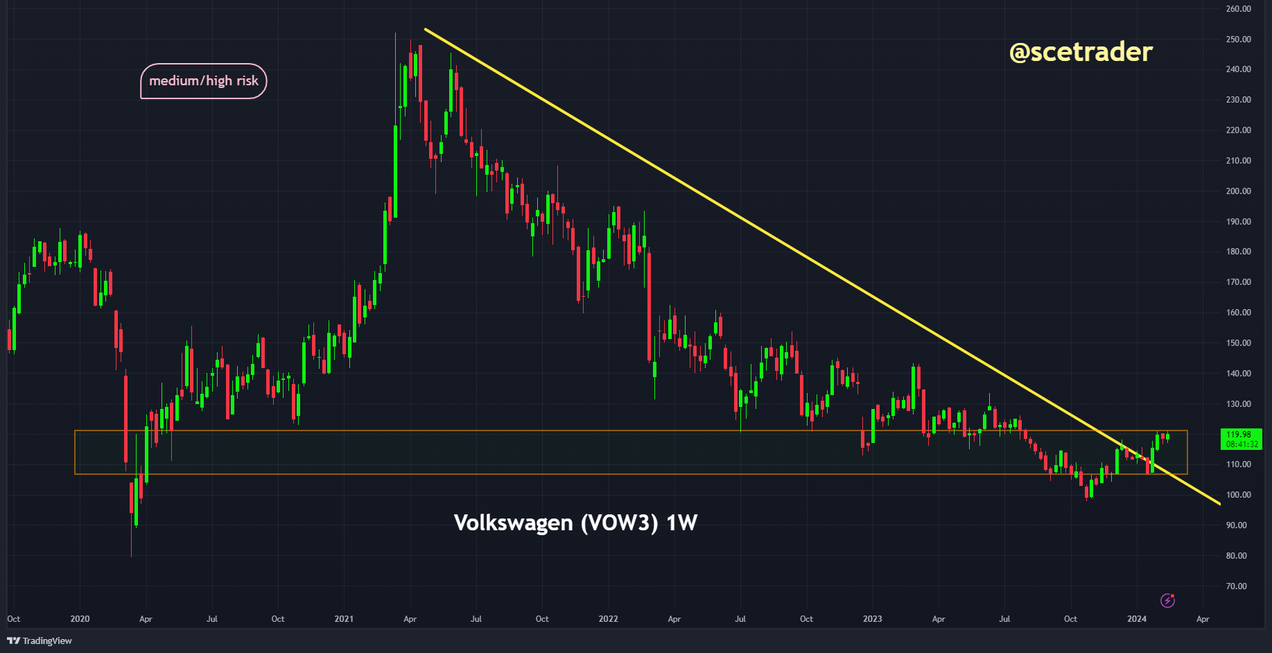 Het nieuws is zeker een opsteker voor Volkswagen. Toch blijven we voor nu neutraal. Hoewel het aandeel goedkoop is en een hoog dividendrendement heeft, zijn we enigszins onzeker over de ontwikkelingen in China, een belangrijke markt. Ook is de prijs actie van het aandeel nog steeds matig hoewel zich een bodem lijkt te vormen.