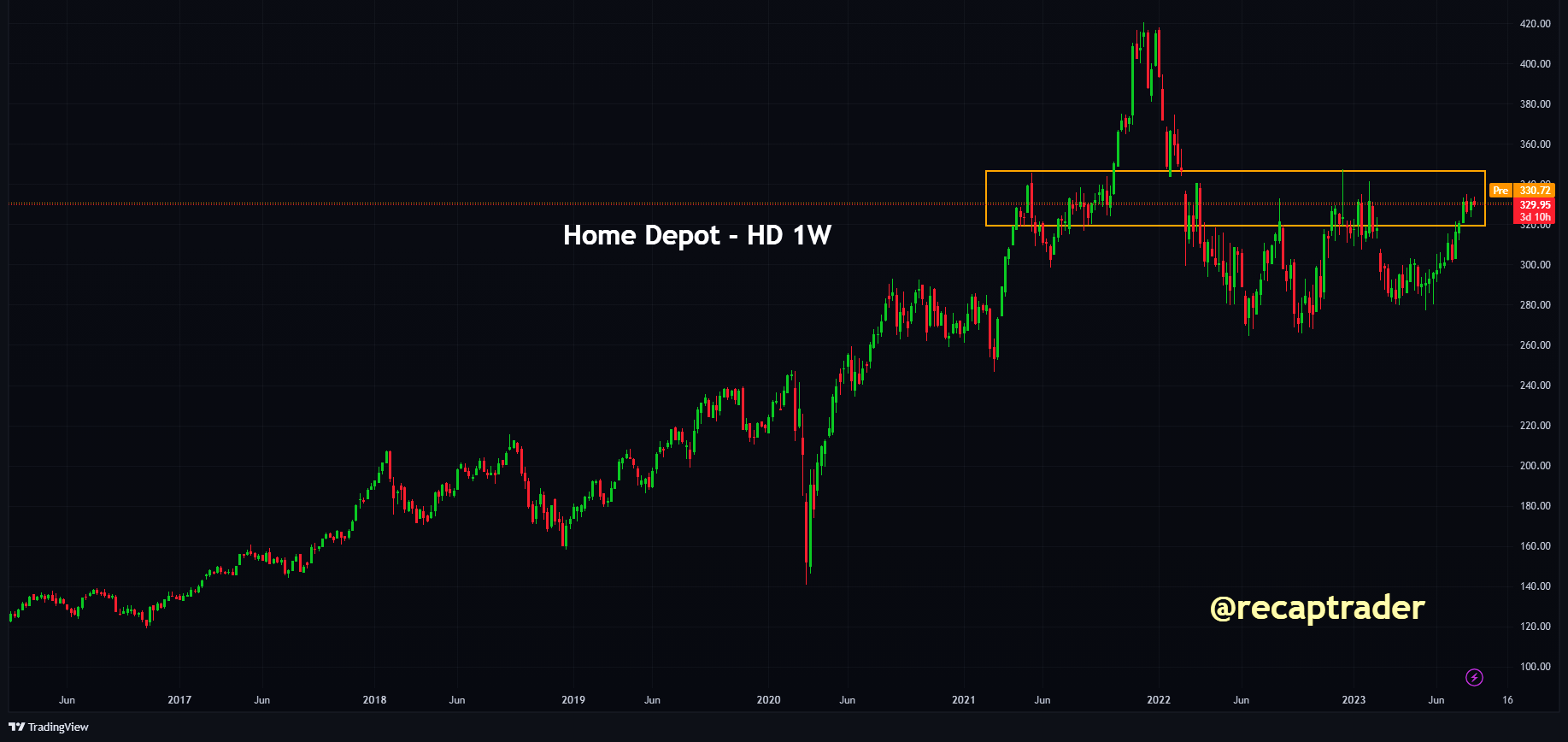 Home Depot $HD zijn cijfers vrijgegeven die een beat waren. Het bedrijf heeft zijn jaarlijkse verwachting gehandhaafd, ondanks het overtroffen resultaat. Dit is een mogelijk negatief signaal. De cijfers zijn beter dan verwacht, maar het bedrijf durft zich er blijkbaar niet aan te wagen de prognose te verhogen. We nemen op dit moment geen actie met betrekking tot Home Depot. We blijven langs de zijlijn staan.
