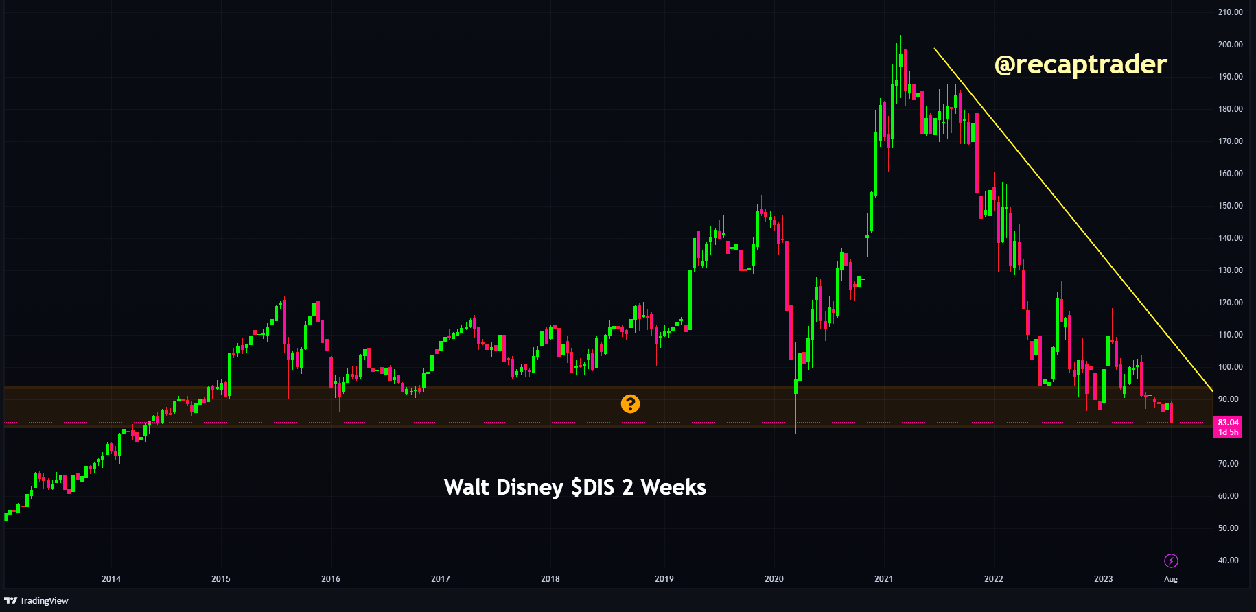 The "House of the Mouse" kan bijna letterlijk worden opgevat. Het aandeel Disney $DIS staat op het laagste niveau sinds 2014, als we de dip van de pandemie niet meerekenen.