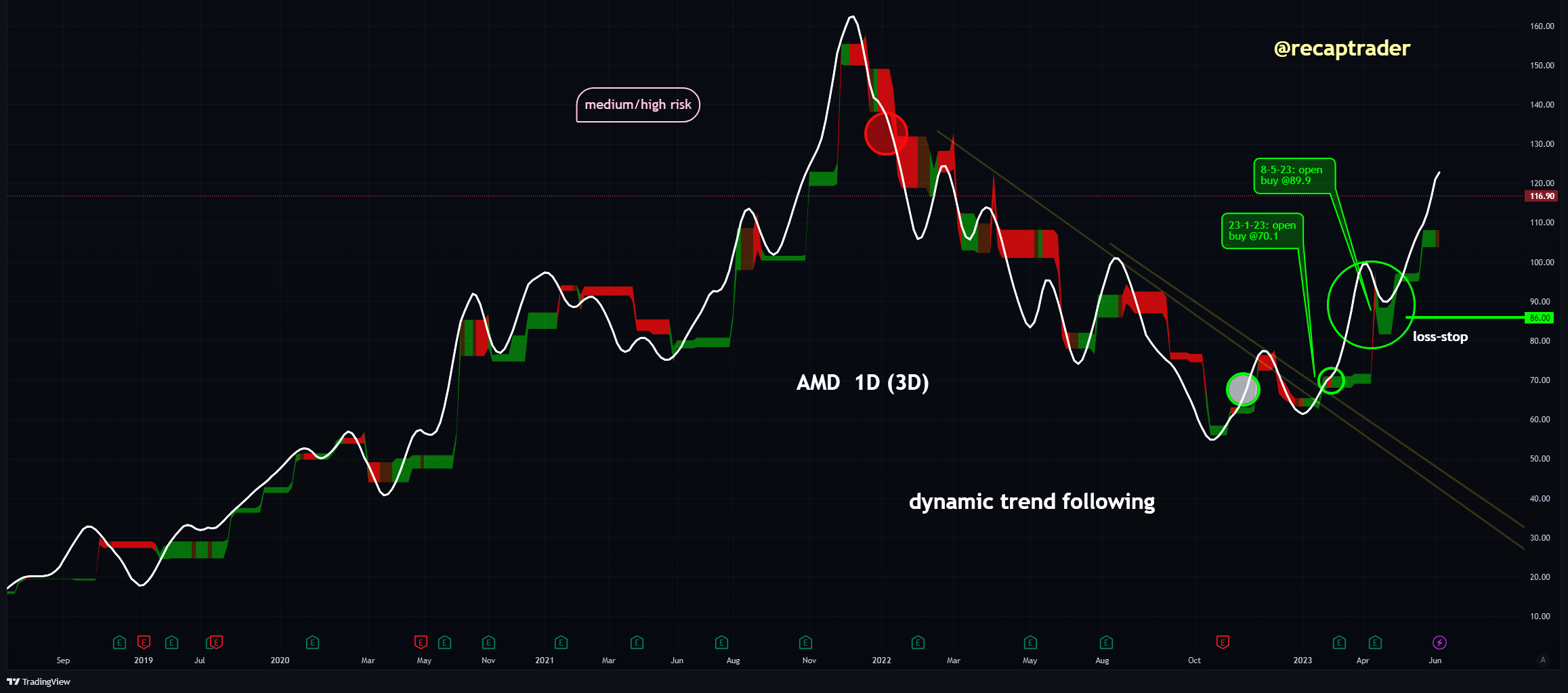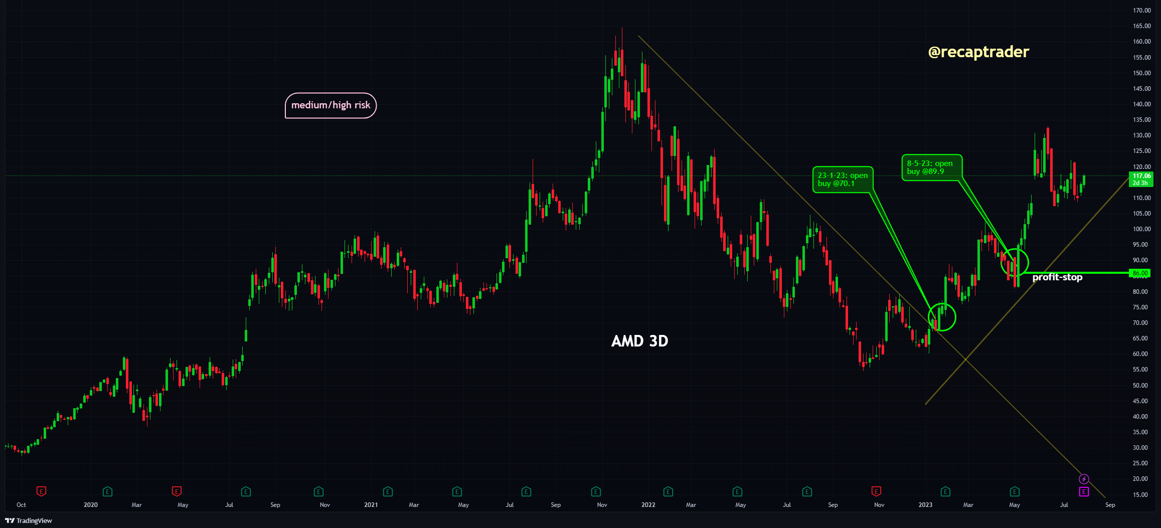 Wij zitten al op een kooppositie in AMD vanaf veel lagere niveaus. De eerste positie was in januari. Sindsdien is de koers fors gestegen. De markt erkent AMD als een mogelijke nieuwe grote speler in AI. Ook maakt het kans om zaken te doen met reuzen als Microsoft en Amazon, nadat Meta al heeft aangegeven gebruik te gaan maken van de nieuwe generatie AMD-chips.
