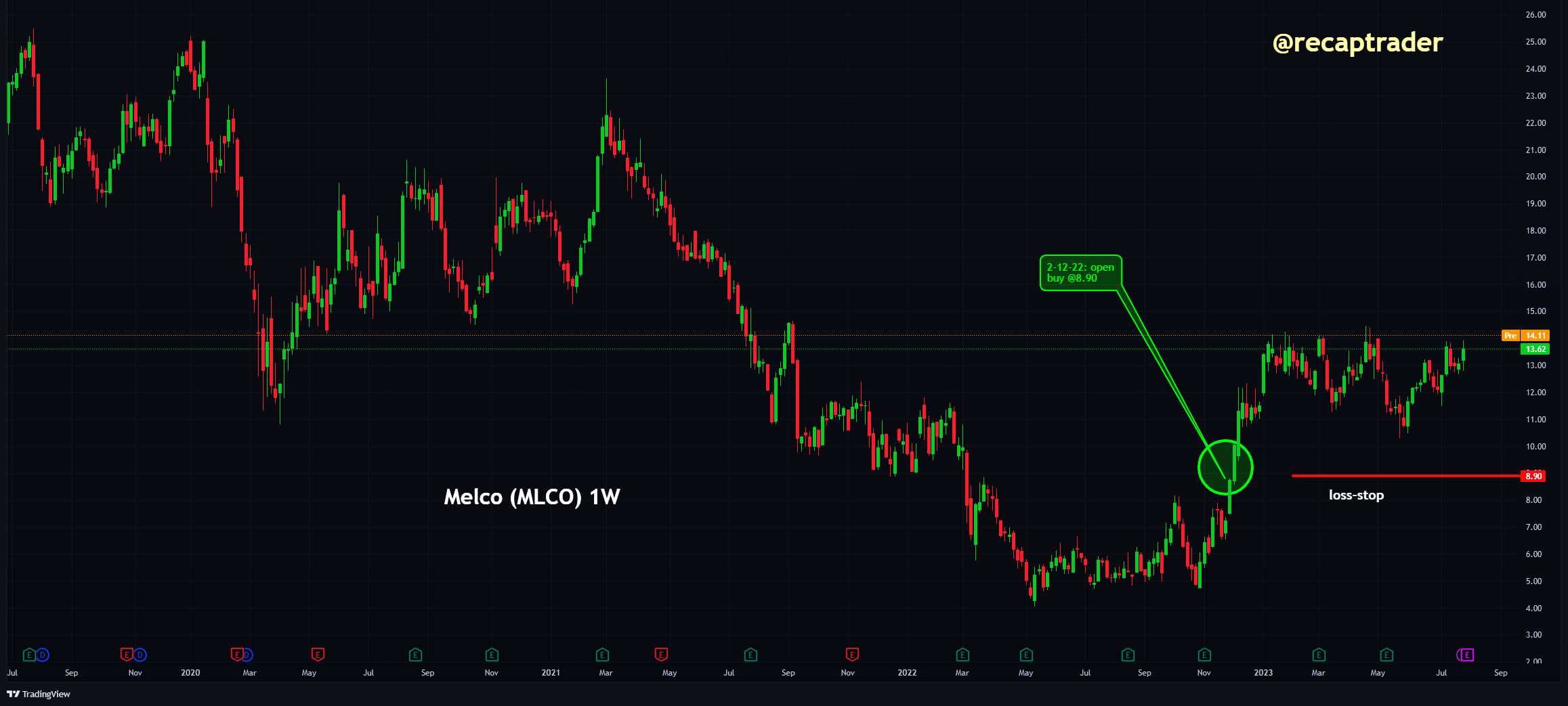 Lukt dat niet, dan kan het feest voorlopig voorbij zijn. Voor nu blijven we nog steeds een verdere stijging voorzien voor Melco waarbij beleggers de cijfers van vandaag toejuichen. We blijven long, maar kopen niet bij.