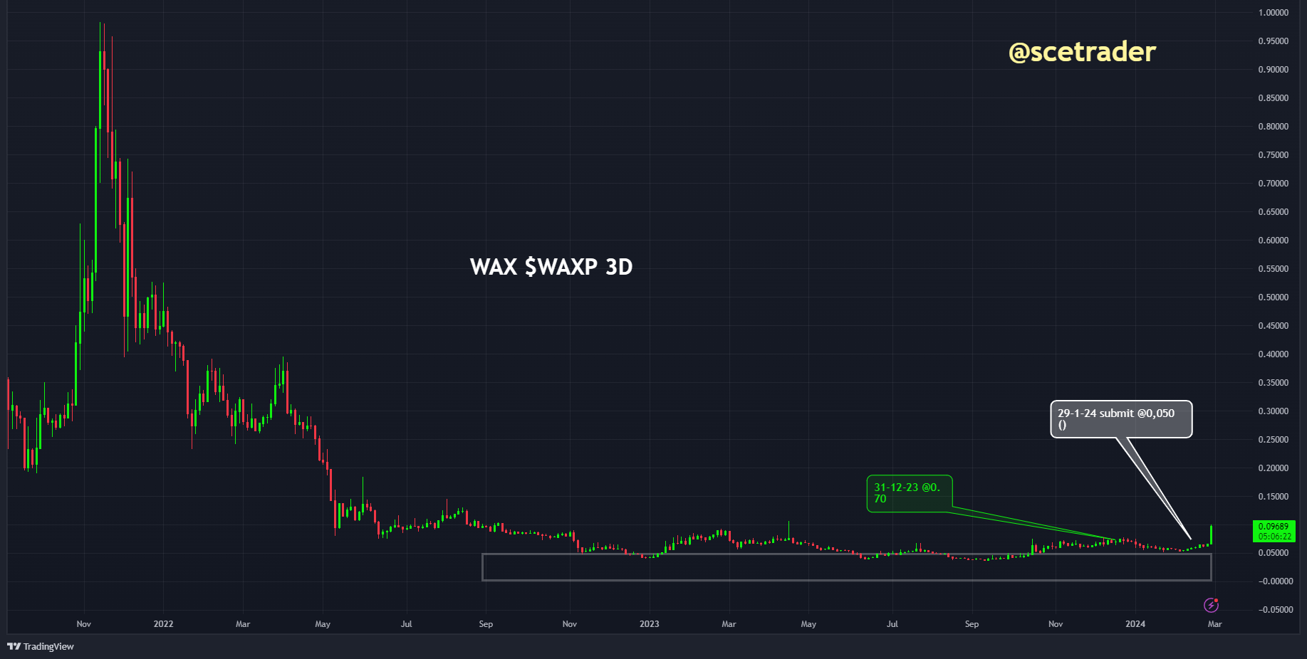 In ieder geval zitten we ertussen als de munt verder naar boven gaat. Gezien eerdere voorzichtige positieve signalen voor blockchains actief in NFT's en gaming is de kans aanwezig dat de WAX-token nog verder gaat stijgen. We blijven dan ook op een stijging zitten.