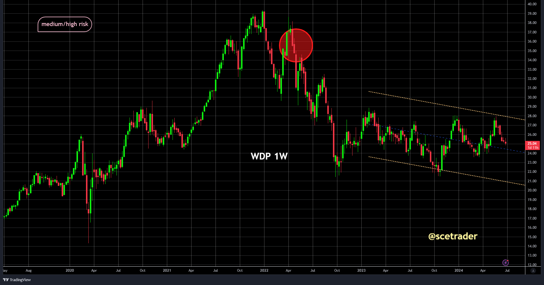 Moody's heeft de kredietwaardigheid van WDP $WSP bevestigd en is positiever over de toekomst. Hoewel dit goed nieuws is, doen we voorlopig niets met het aandeel. Dit komt mede door de prijs actie op de chart die nog altijd niet overtuigend is.